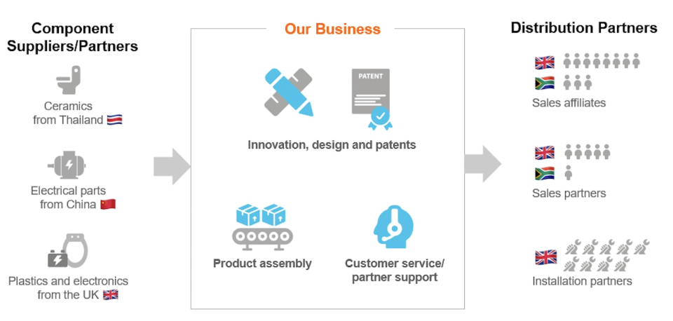 The company’s B2B business model guarantees high environmental impact of their products, which are still not suitable for households due to high costs. Their clients include universities, councils, and large corporations. The mission of the company is to fight the global water crisis, and their efforts to do so have thus far included expansions into water stressed areas such as the Gulf countries and South Africa, where they partnered not only with corporate clients, but also with other innovators in sanitation technology, that aim to bring hygienic and sustainable toilets to rural communities.